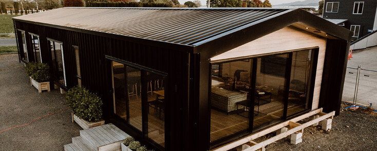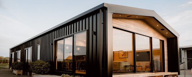 With the main living at one end and bedrooms at the other, this home provides flexibility for narrower sites and those looking to maximise views at one end of their property. A stunning cedar recessed end graces the entertaining deck end of the building while a decorative aluminum panel with up-lights and louvres at the other end of the home, provides maximum road frontage appeal.