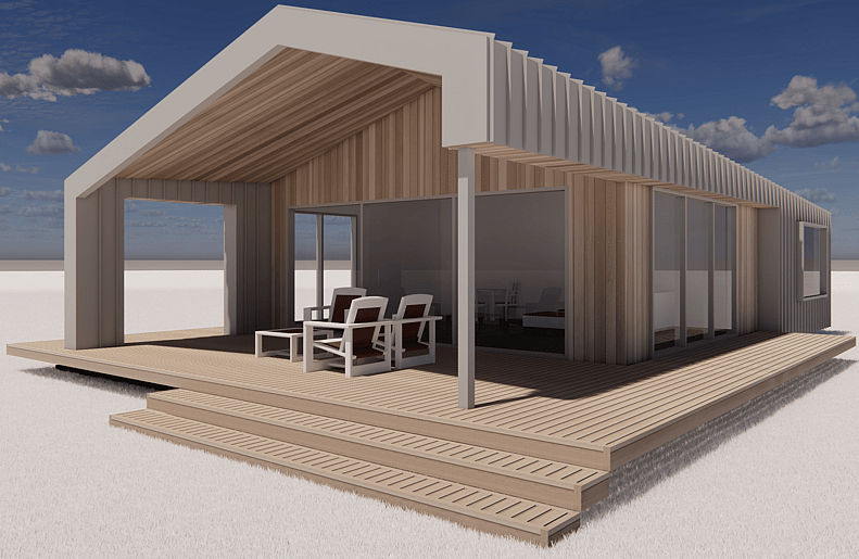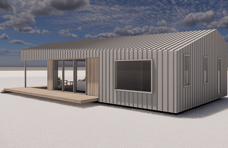 Fold House is a compact 70m² transportable home that explores how a strong architectural idea can elevate a modest footprint. Designed in collaboration with Elevate Homes, the project responds to a client brief for a refined, low-maintenance dwelling suited to a semi-rural setting near Cambridge.