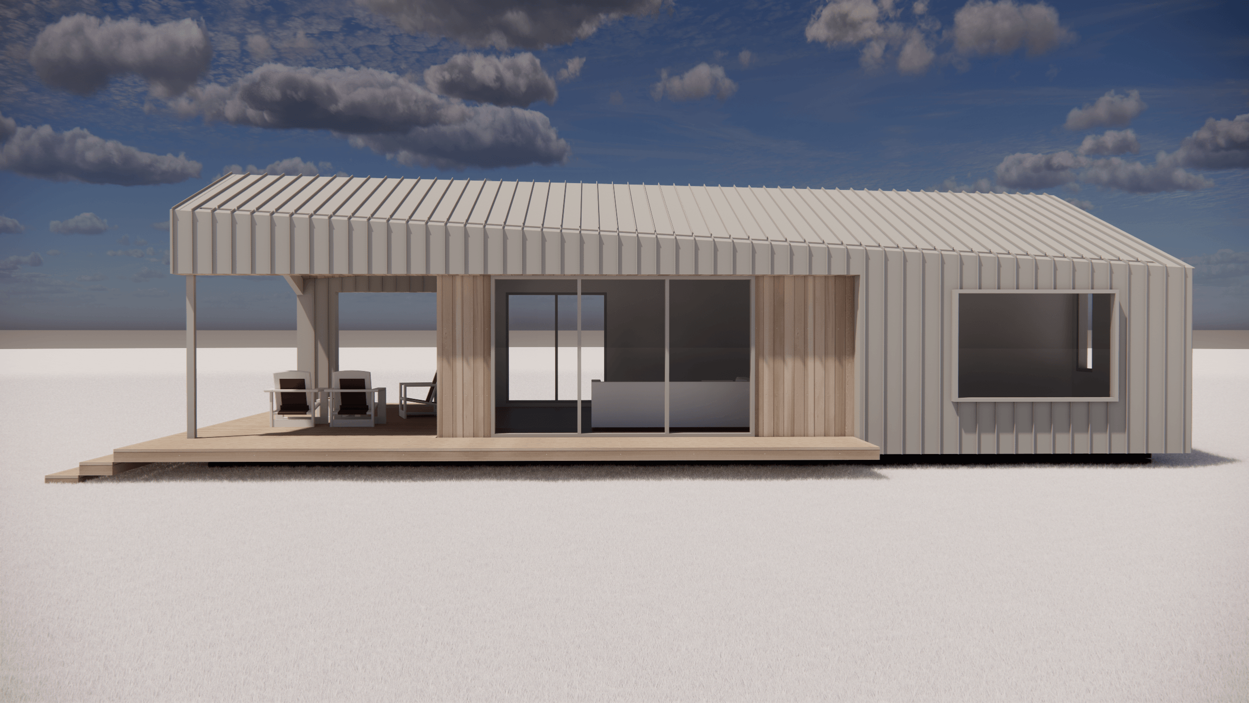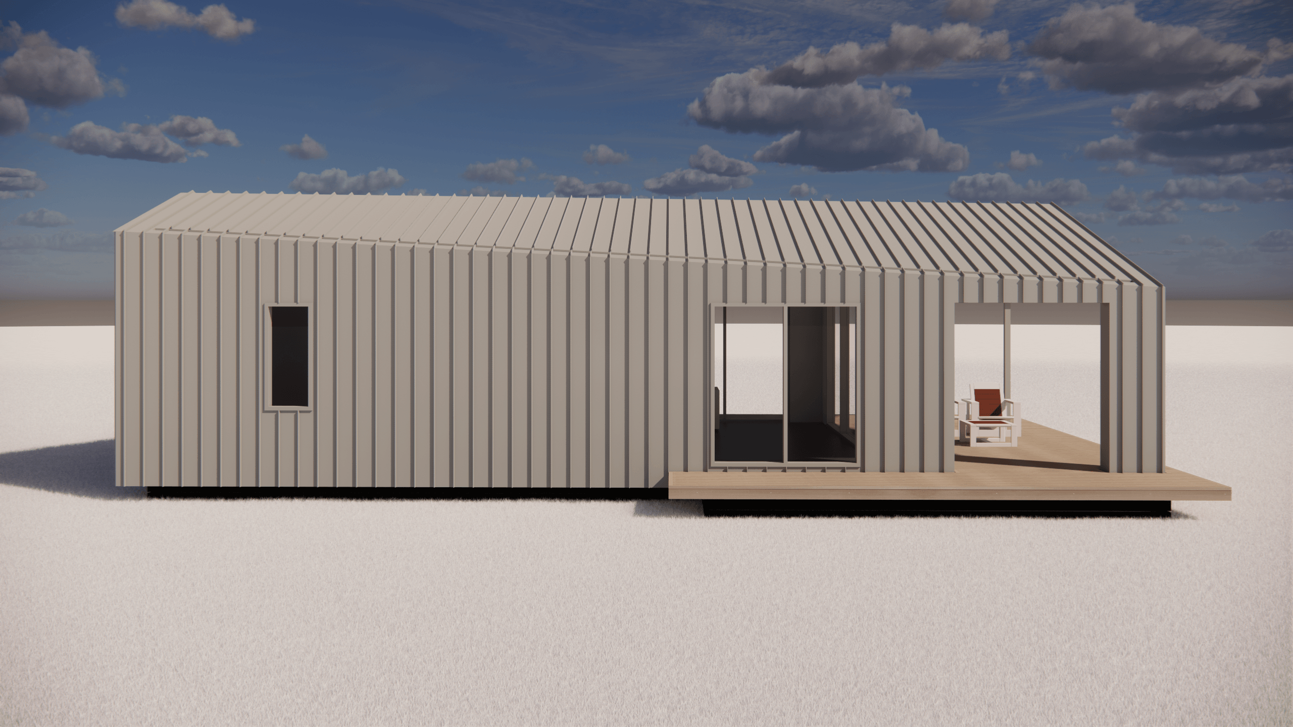 Fold House is a compact 70m² transportable home that explores how a strong architectural idea can elevate a modest footprint. Designed in collaboration with Elevate Homes, the project responds to a client brief for a refined, low-maintenance dwelling suited to a semi-rural setting near Cambridge.