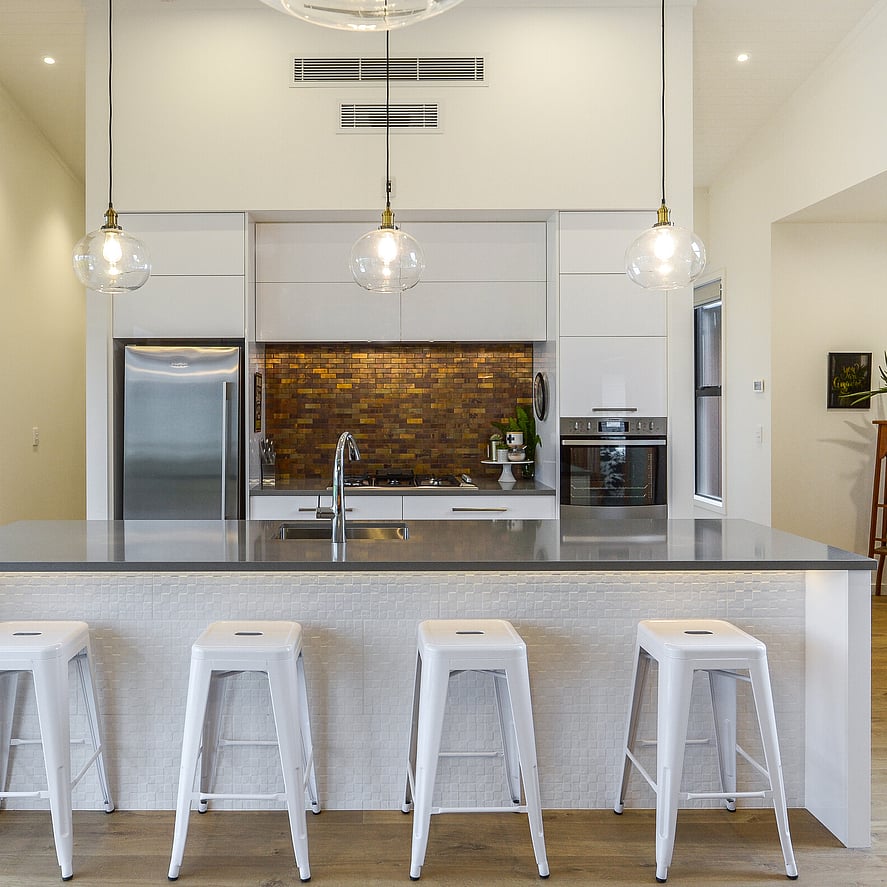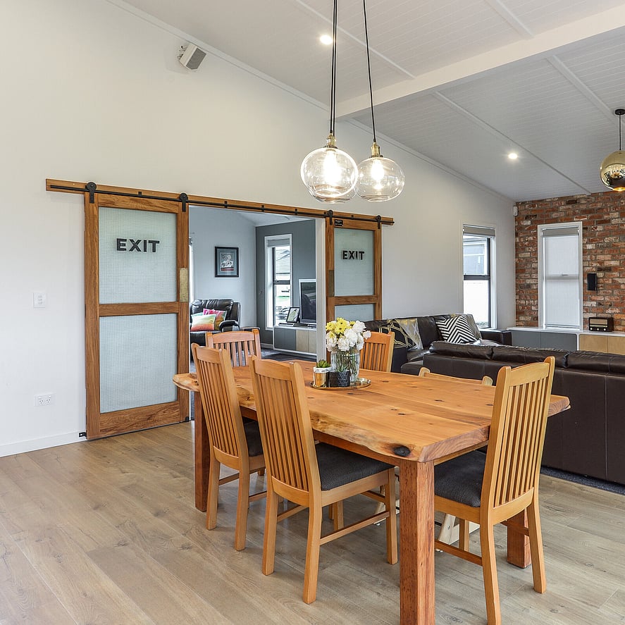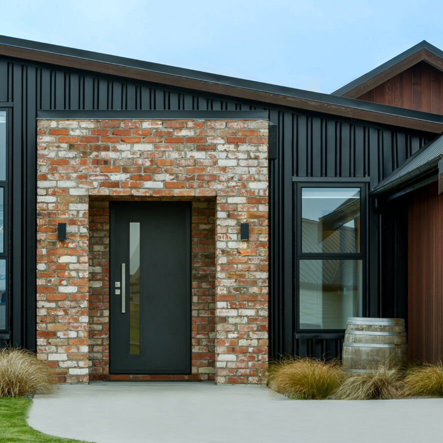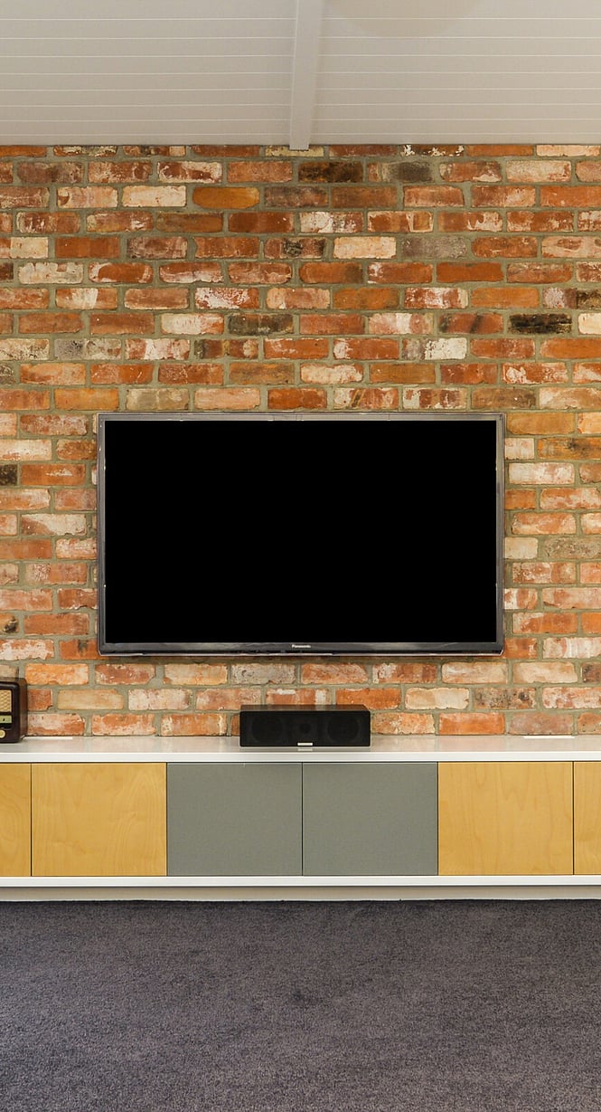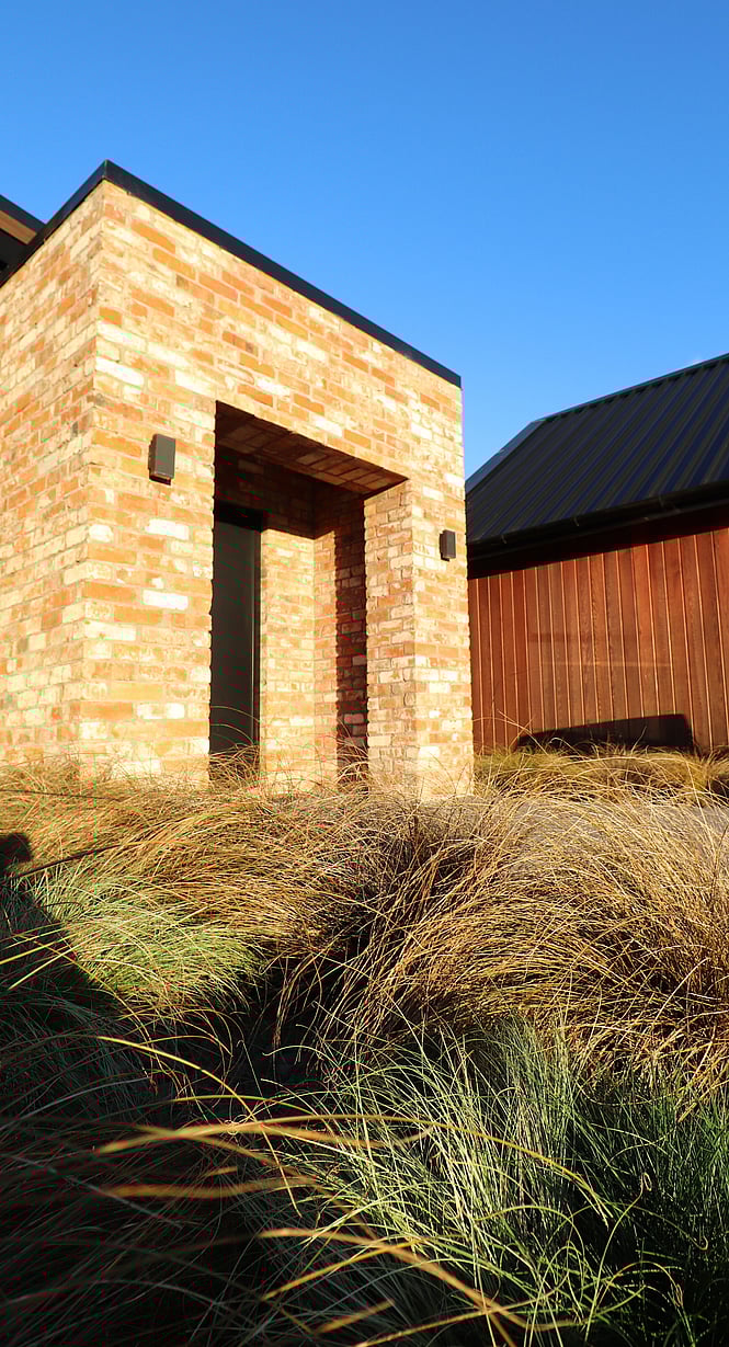 On-trend recycled brick creates a stunning entrance and outdoor entertaining area and is mirrored internally in the living room - creating the central focal point of the room.