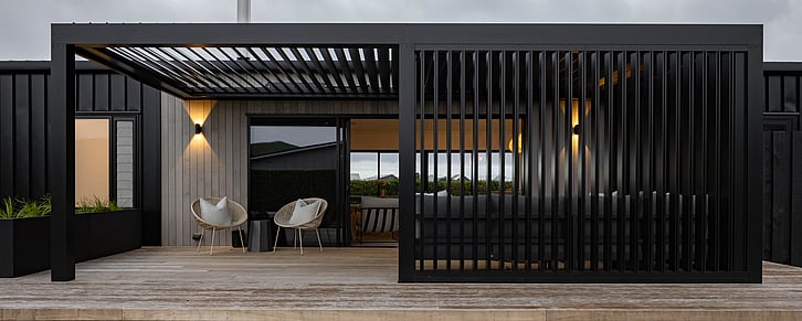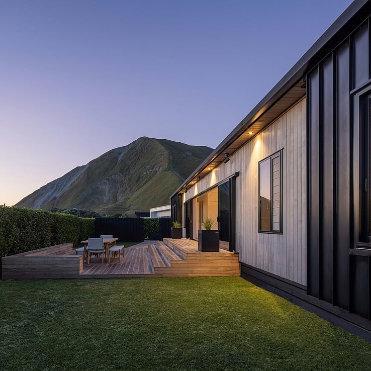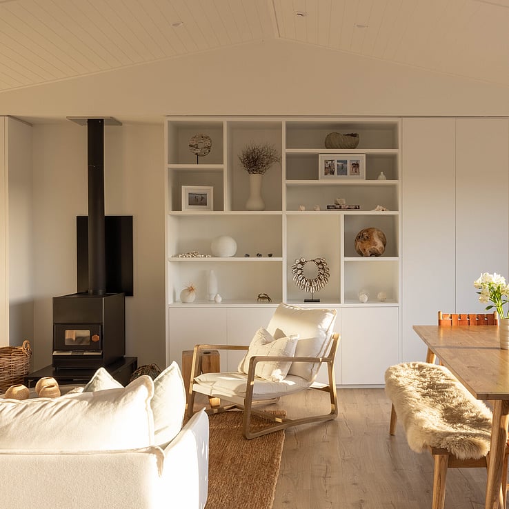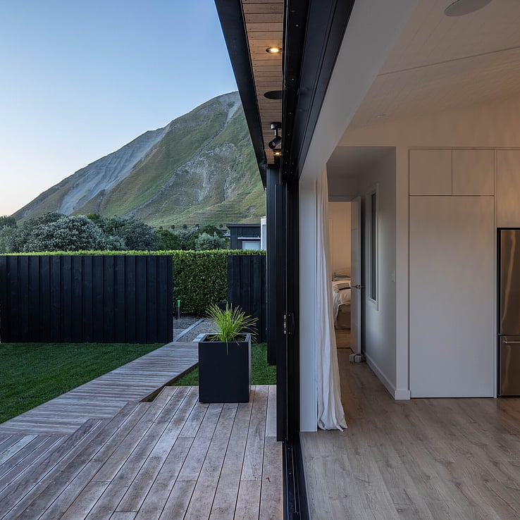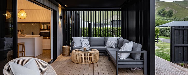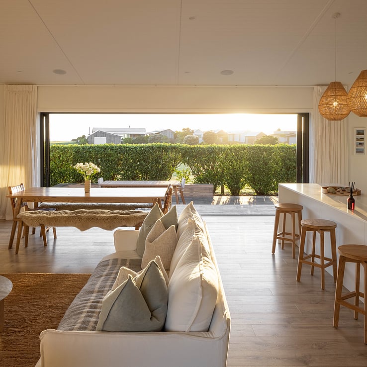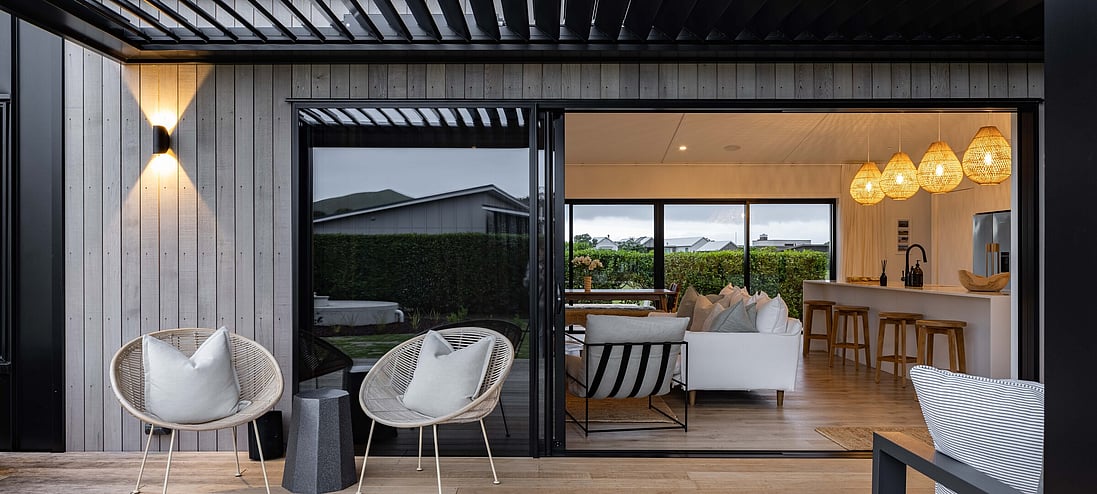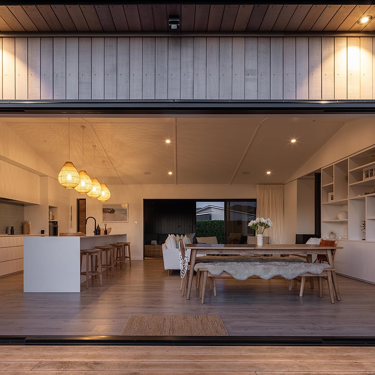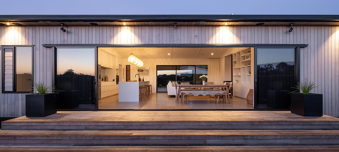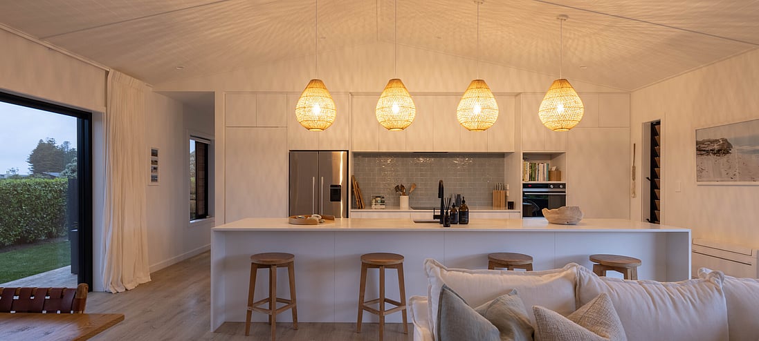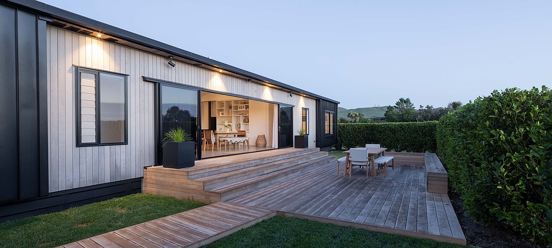 What was originally, an Elevate Barn 150, is now affectionately termed ‘The Bach’ by it’s owners, Vicki and Scott and their adult sons, and is situated a mere hop and skip away from tranquil Shoal Beach, Hawkes Bay.