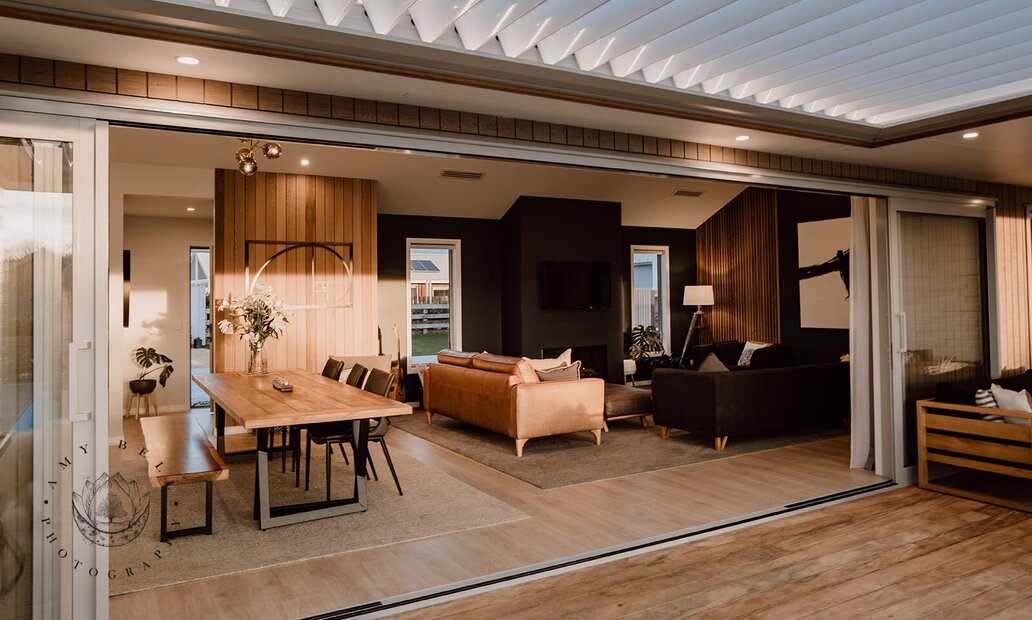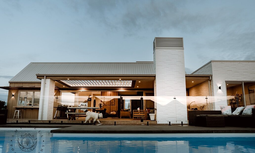 The open plan main living area with poolside views is the focal point of this family home and is set to become the backdrop for many a full- filled occasion.