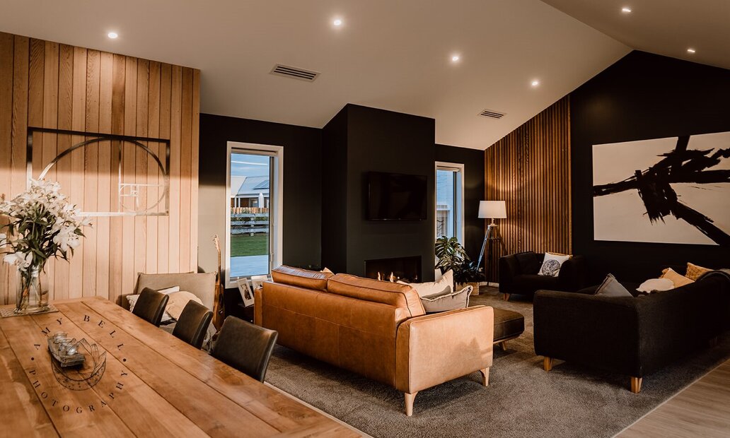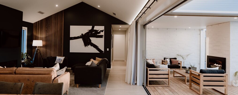 The contrasting depth of colour and warm timber accents used in the home’s interior is an arresting yet restful divergence from the light and bright exterior. And the enviable indoor/ outdoor flow manages to marry these spaces effortlessly.