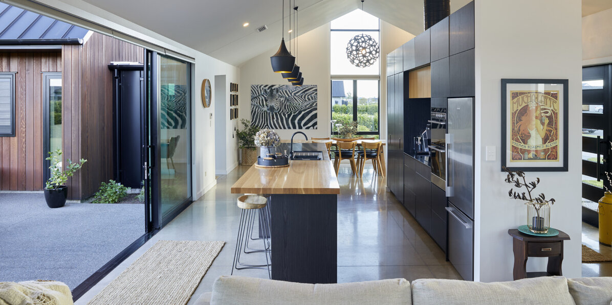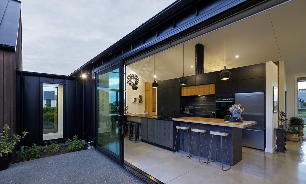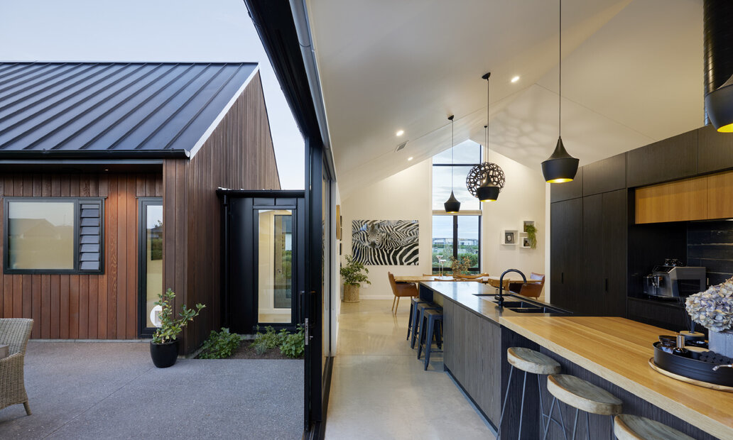 A 'contemporary barn' design with simple lines and bold cladding. This stunning home won a commendation award at the 2017 ADNZ Regional Architectural Design Awards.