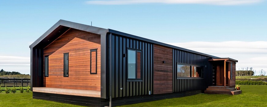 This gabled modern barn relocatable home has been moved to its forever location and has settled beautifully in to the rural Kaipaki surrounds - even the horses seem to be taking the new neighbour in their stride!