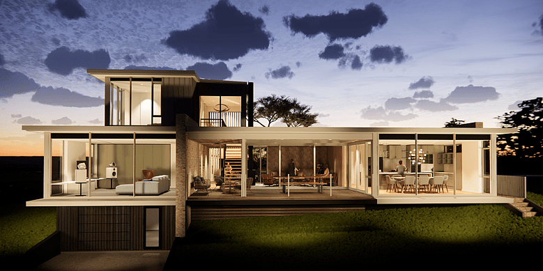 Nestled in the heart of Raglan, a town celebrated for its creative culture and coastal charm, one of our latest projects is a stunning holiday home perched on the brow of a peninsula, with spectacular water views.