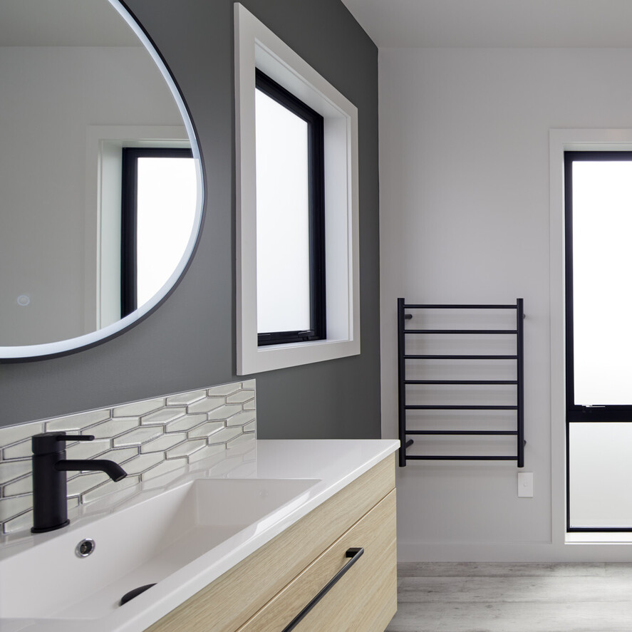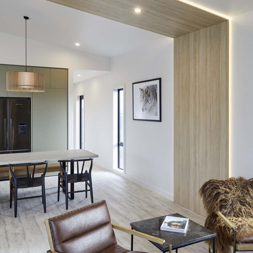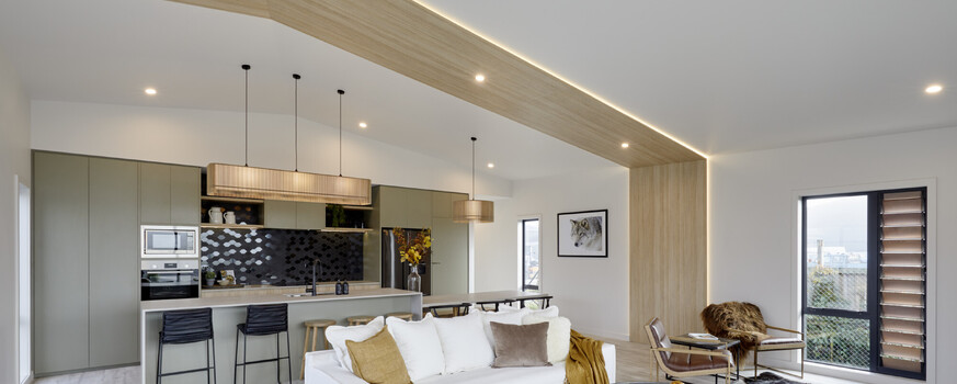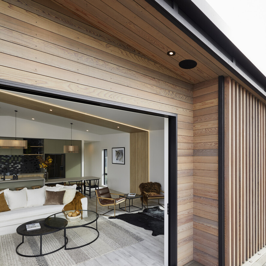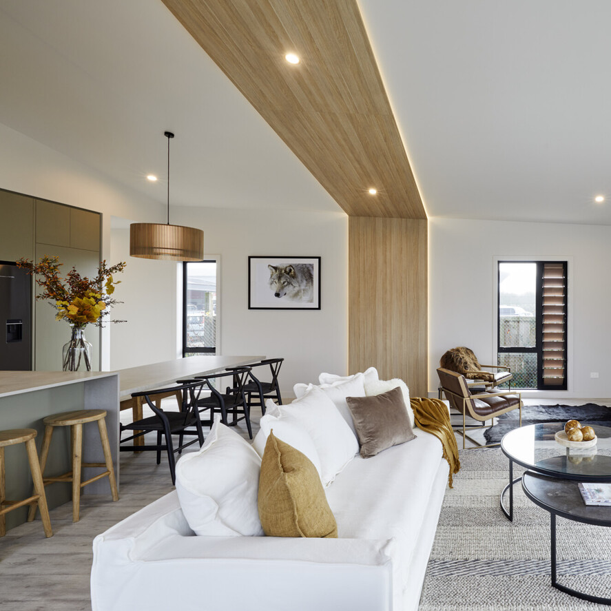 At 145m2 this spacious, well-appointed home has all the features you’ve come to expect in a design and quality-focused Elevate home. The open plan living, and dining area boasts oversized stacker doors on two walls providing all-important indoor/ outdoor flow. The soaring ceiling, in this area, is accentuated by stunning timber paneling with LED strip lighting and the over height ceiling and doors throughout the rest of the home add to the spacious feel of the interiors. Commercial grade laminate flooring is used throughout with premium carpet in the bedrooms to add warmth and elegance, and the enviable ensuite and bathroom are fitted with quality European and NZ engineered bathroom and tapware.