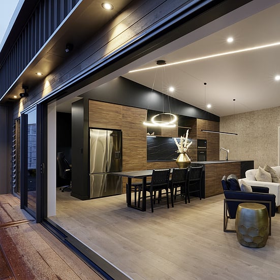 At 150m2 this spacious, beautifully appointed house has all the features you’ve come to expect in a design and quality focused Elevate home. The open plan living and dining area boasts a 5.5m over wall stacker door allowing seamless indoor/ outdoor flow and employs a deck to significantly increase living space. The stacker door positioned opposite further promotes the illusion of bringing the outdoors in.