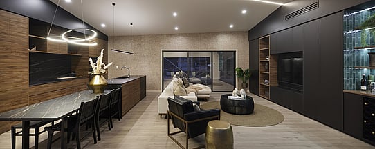 A considered design makes efficient use of the internal space with elements employed to create a sense of spaciousness, maximise light and reduce wasted areas. Ingeniously designed nooks and inset spaces throughout include a cleverly concealed scullery and laundry, an intimate office alcove and an in-built entertainment unit with elegant cocktail bar. These space saving elements and the use of rich and opulent textures, colours and finishes lift the home to next level style and luxury.
