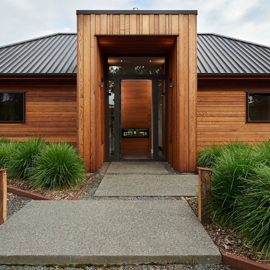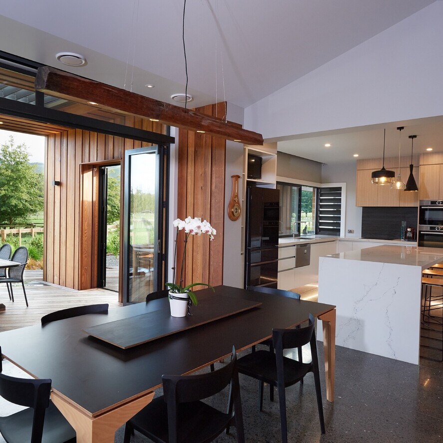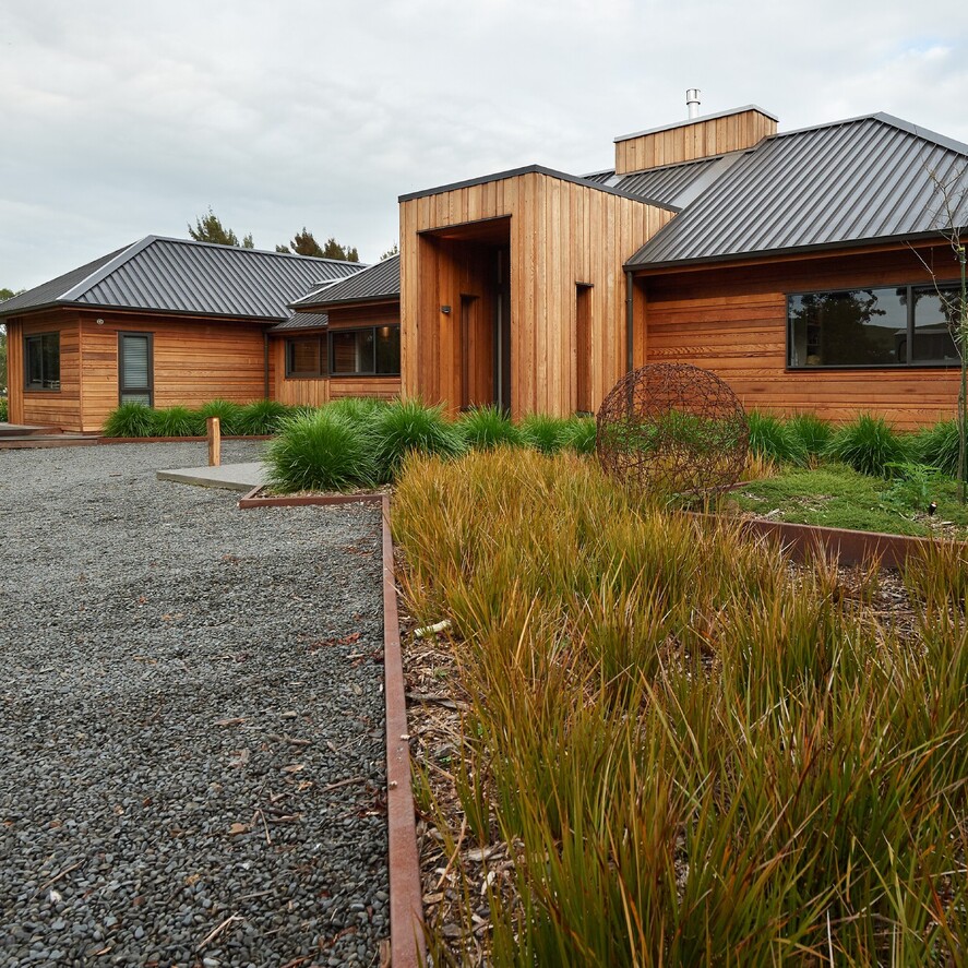 Horizontal and vertical cedar weatherboards complement the low lying, simple lines of this lifestyle home. Nestled at the base of Te Miro hills on the outskirts of Cambridge this unique house - shared by the home owners, their two dogs and often one or two curious chickens - is striking, yet blends well with its hilly rural surrounds.