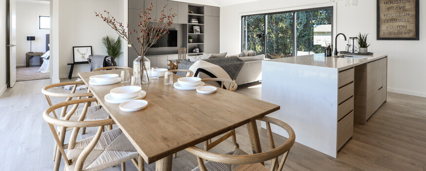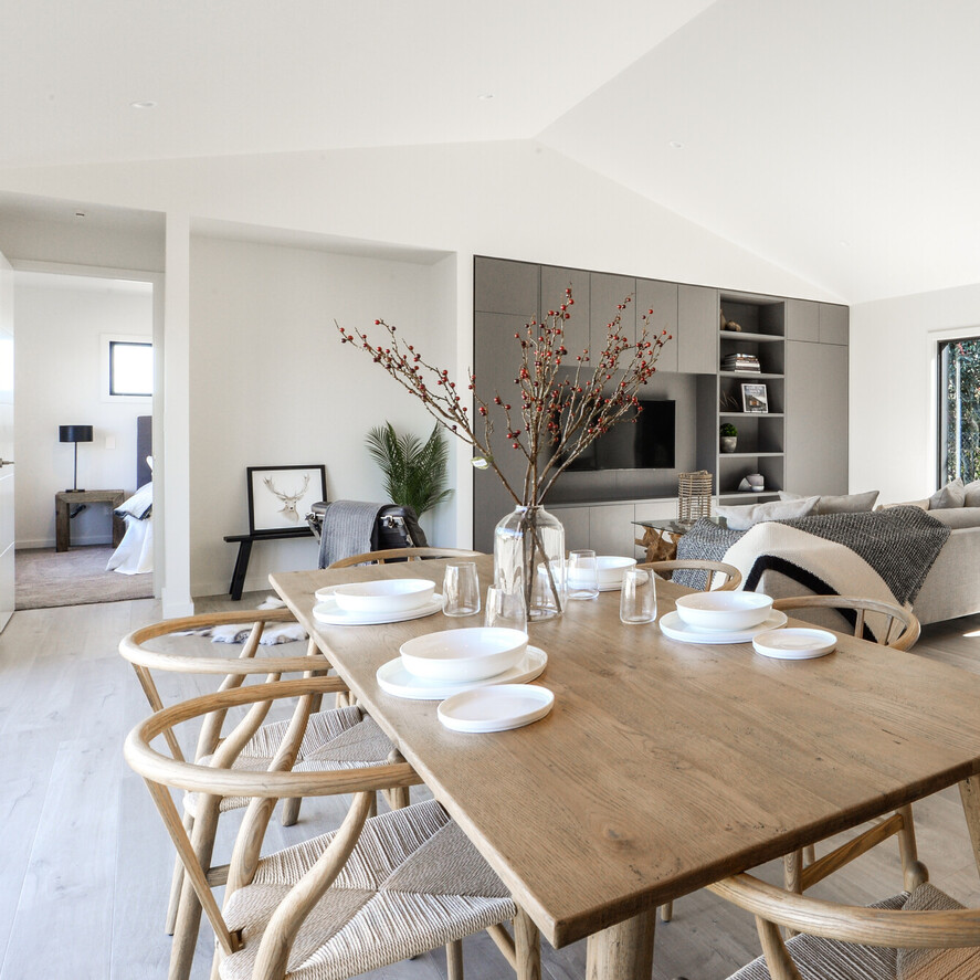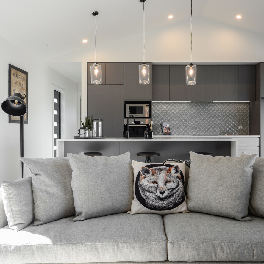 This house started out as an Elevate show home so selecting the colours, fittings and finishes was a combined effort from the Turner Road Architecture and Elevate interior design teams and their loyal Facebook audience. The end result was a soft coastal themed interior and the exterior featured ashy tones of graphite stained cedar and flaxpod steel.